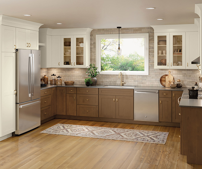 Product photography and illustrations have been reproduced as accurately as print and web technologies permit. To ensure highest satisfaction regarding door styles and finishes, we suggest you view an actual sample from your nearest Lowe's for best color, wood grain and finish representation. When a Painted Color or Painted Color with Artisan Glazing is specified, the door and/drawer front center panel may be constructed of Medium Density Fiberboard (MDF), except when Storm finish, Farmington or Peyton door styles, or when Heirlooming is specified.