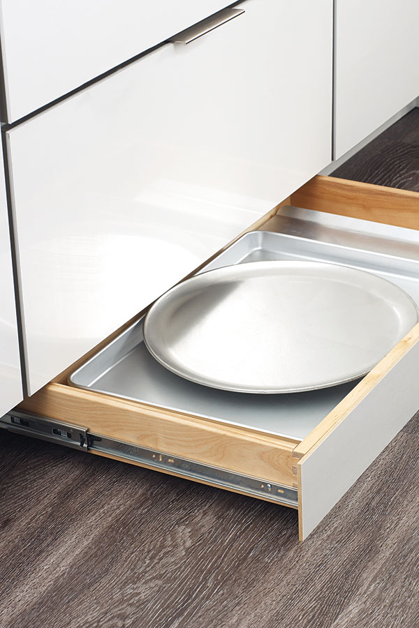 Use every last inch of space with our Toekick Drawer. Ideal for storing items that aren't often used, or making things accessible for little ones, enjoy storage right to the floor. Opens with just a tap; no hands or hardware required.
