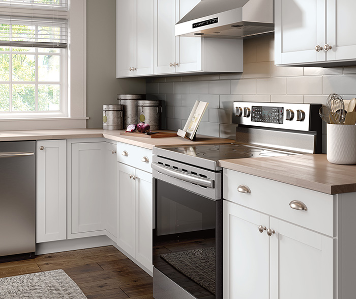 Embrace simplicity and affordability with Arcadia White cabinets, featuring clean Shaker styling and timeless appeal that brings bright, budget-friendly elegance to your kitchen renovation.