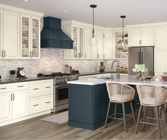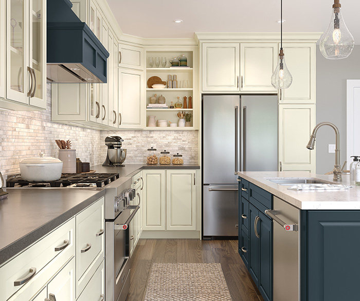 Product photography and illustrations have been reproduced as accurately as print and web technologies permit. To ensure highest satisfaction regarding door styles and finishes, we suggest you view an actual sample from your nearest Lowe's for best color, wood grain and finish representation. When a Painted Color or Painted Color with Artisan Glazing is specified, the door and/drawer front center panel may be constructed of Medium Density Fiberboard (MDF), except when Storm finish, Farmington or Peyton door styles, or when Heirlooming is specified.