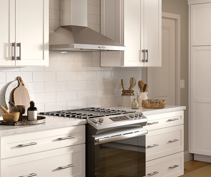 Brighten your home with the classic appeal of the Jamestown Shaker White kitchen, featuring a clean and versatile design. This inviting L-shape layout, complete with a functional kitchen island, offers abundant space for cooking and entertaining.