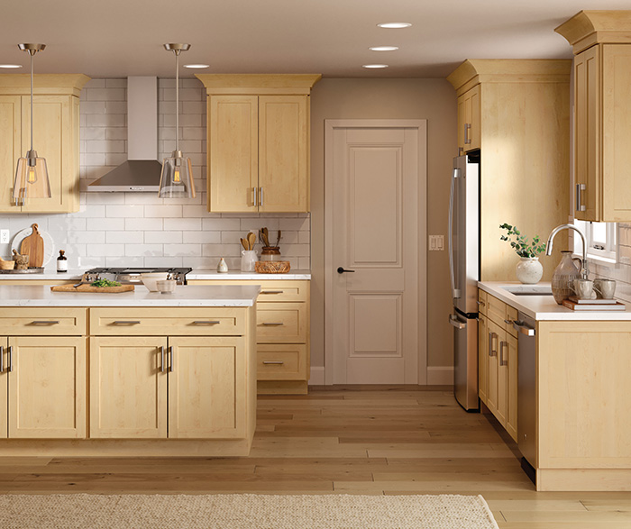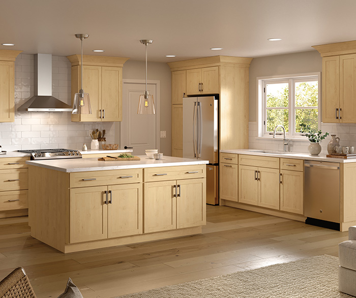 Bring a touch of elegance to your home with the Jamestown Shaker kitchen in a beautiful Natural stained finish. This inviting L-shape design, complete with a functional island, offers both ample workspace and a stylish gathering area for your family and friends.