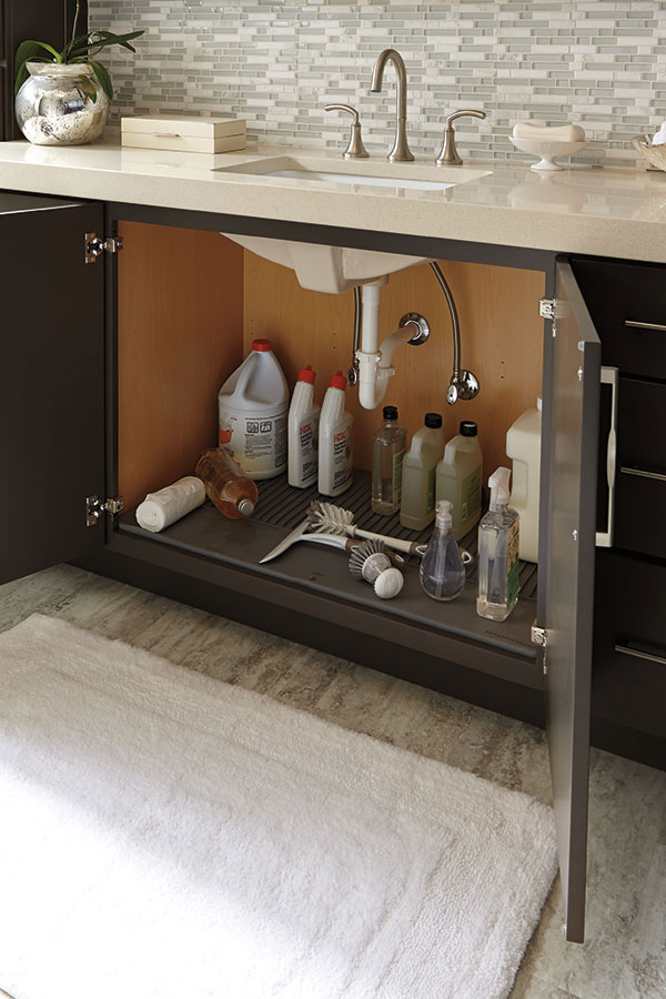 Protection against leaks and spills now available for 21” deep vanities and 24” deep Base Cabinets as a modification, eliminating the need to size the face frame opening.